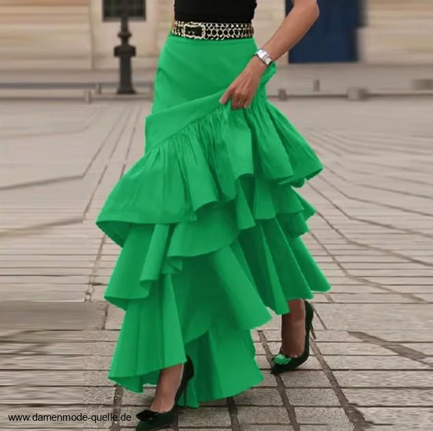 Einführung » Neuheiten 2025 - 2026 » Eleganter Damen Rock mit Rüschen in Grün