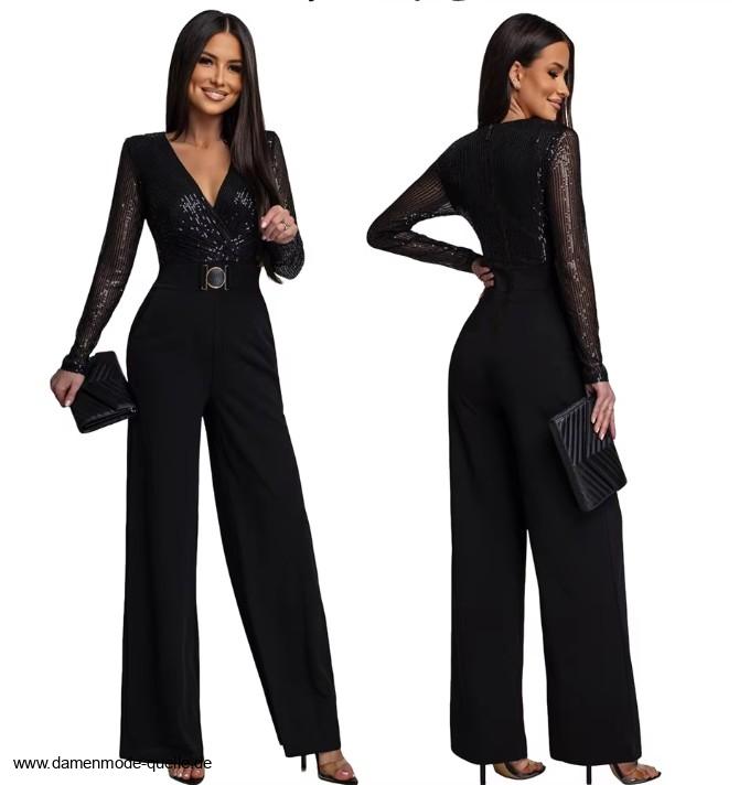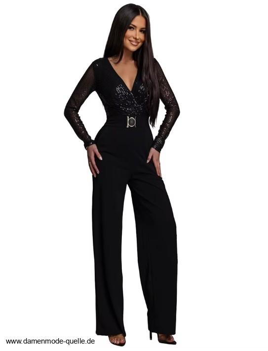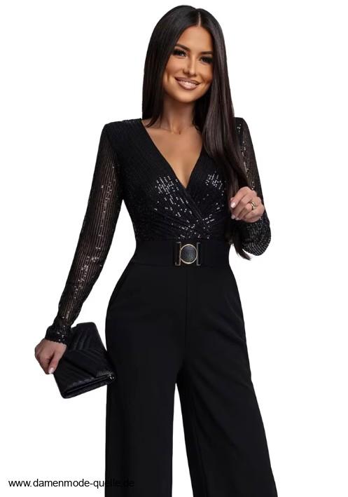 Einführung » Jumpsuit Einteiler 2026 » Glitzer Pailletten Einteiler Jumpsuit Danica Elegant in Schwarz