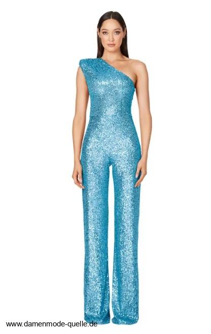 Einführung » Jumpsuit Einteiler 2025 - 2026 » One Shoulder Glitzer Einteiler Jumpsuit Elegant und Festlich in Hellblau