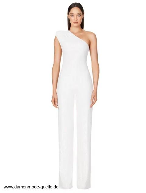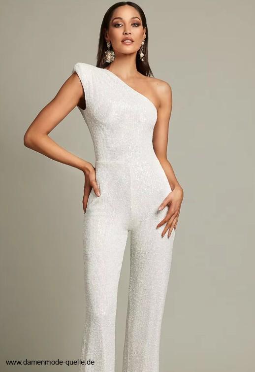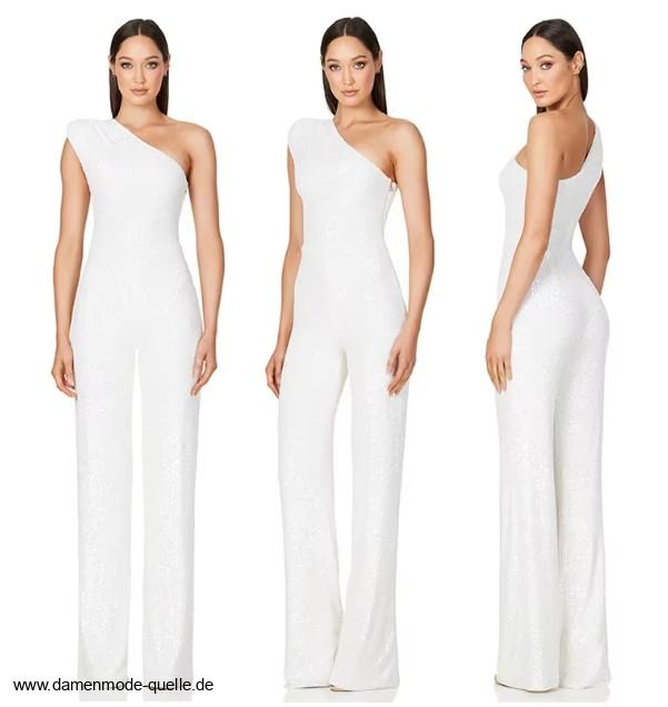 Einführung » Jumpsuit Einteiler 2025 - 2026 » One Shoulder Glitzer Einteiler Jumpsuit Elegant und Festlich in Weiß